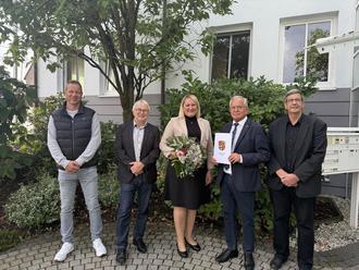 v. l. n. r. Personalratsvorsitzender Oliver Leinberger, Beigeordneter Gebhard Klee (CDU), Bürgermeisterin Dana Hauke (CDU), Erster Beigeordneter Theodor Kohlmann (FWG) und Franz Giebel (Büroleitender Beamter)