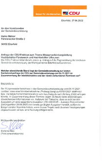 | Anfrage der CDU-Fraktion vom 27.06.2022 Welcher abweichende Stand liegt der Gemeindeverwaltung zur letzten Sachstandsanfrage der CDU zur Gemeindevertretung vom 04.11.2021 im Zusammenhang mit der Inbetriebnahme und den damit verbundenen Terminen vor? |