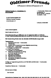 Oldtimer-Freunde Ufhausen-Unterufhausen - Einladung Jahreshauptversammlung