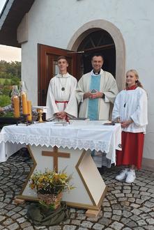 Einen herrlichen Blick über die sommerliche Landschaft konnten die Gottesdienstbesucher genießen, die sich am Freitagabend am hoch gelegenen Heilighäuschen in Ufhausen versammelt hatten. Gefeiert wurde openair das Fest "Mariae Himmelfahrt" mit der traditionellen Weihe der Heil- und Würzkräuterbündel.