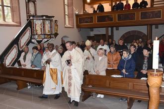 Ein Pontifikalamt feierte Bischof em. Heinz Josef Algermissen, Fulda in Konzelebration mit den Pfarrern Markus Günther, Aloysius Ndiukwu und Andreas Matthäi (alle Pastoralverbund Hessisches Kegelspiel zu den Heiligen 14 Nothelfern) auf dem Gehilfersberg bei Rasdorf. Damit endet in der Wallfahrtskirche zu den Heiligen 14 Nothelfern das Wallfahrtsjahr 2025. Begonnen hatte dieses traditionell am Ostermontag. Danach fanden jeden Samstagmorgen und an besonderen Festtagen Eucharistiefeiern in der Wallfahrtskirche statt, denen unterschiedliche Priester vorstanden. Auch diese entfallen bis zur Wiedereröffnung des Wallfahrtsjahres an Ostermontag 2026.