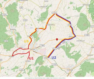 Die Umleitung 3 (U 3) verbindet die Marktstraße in Eiterfeld mit der Bahnhofstraße in Leibolz und erfolgt in beide Richtungen über Leibolz, Ufhausen, Unterweisenborn, Wölf und Reckrod. Die U 3 verläuft dabei über die U 1.