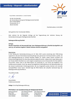 Mit Schreiben vom 30.08.2023 hat die FWG-Fraktion den Antrag zur Aufnahme des folgenden Tagesordnungspunkts auf die Sitzung der Gemeindevertretung am 14.09.2023 gestellt: