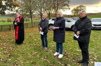Pfarrer Karl Josef Gruber weihte am Samstag, den 02.11.2024, die von der Dorfgemeinschaft erbaute Wetterschutzhütte auf dem ehemaligen Spielplatz in Branders.