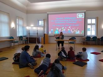 In den Kindergärten gestaltete die Bürgermeisterin die Vorlesezeit besonders interaktiv: Mittels Kamishibai, einem traditionellen japanischen Erzähltheater, lasen die Kinder gemeinsam mit ihr die Geschichte "Das Zebra mit dem Regenschirm". "Es war mir besonders wichtig, nicht nur vorzulesen, sondern zusammen mit den Kindern zu lesen und sie aktiv einzubinden", betont Hauke.
