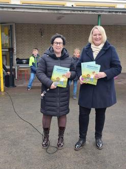 Ein weiterer besonderer Termin war der Besuch der Grundschule „Im Eitratal“, wo Bürgermeisterin Hauke mehrere Bücher "Spielplatzalarm in der Marktgemeinde Eiterfeld" als Spende überreichte. Die Schulgemeinschaft bereitete ihr einen herzlichen Empfang auf dem Schulhof, der mit musikalischen Tänzen gekrönt wurde.