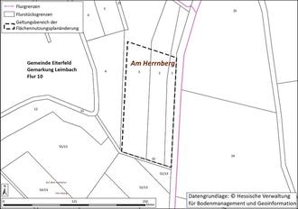 Anlass der Flächennutzungsplanänderung ist die geplante Erweiterung der Betriebsstätte zum Kalkkiesabbau „Am Herrenberg“. Da der Materialvorrat des genehmigten Abbaus spätestens im Jahr 2023 erschöpft sein wird und sich aufgrund der hohen Nachfrage weiterhin ein starker Bedarf abzeichnet, soll der Bereich für den Kalkkiesabbau erweitert werden. Ziel und Zweck der FNP-Änderung ist die Schaffung der planungsrechtlichen Voraussetzungen für die Erweiterung. Der Geltungsbereich beinhaltet jeweils die südlichen Teilbereiche der Flurstücke 1, 2 und 3 der Flur 10 in der Gemarkung Leimbach. Lage und Abgrenzung des Plangebiets sind auch aus der untenstehenden Abbildung ersichtlich. Der Geltungsbereich umfasst eine Fläche von ca. 1,4 ha, wodurch der Steinbruch eine Gesamtgröße von 2,9 ha erreicht und somit als raumbedeutsames Vorhaben eingestuft wird. Die mit der Änderung einhergehende Abweichung vom Regionalplan Nordhessen wurde durch den Zentralausschuss der Regionalversammlung Nordhessen in seiner Sitzung vom 24.02.2023 zugelassen.