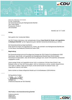 | Antrag der CDU-Fraktion vom 12.11.2025 Freier Eintritt für Kinder und Jugendliche im Badepark Eiterfeld |