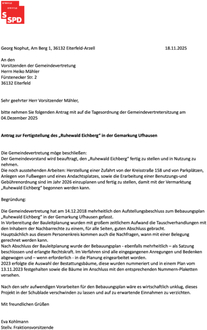 | Antrag der SPD-Fraktion vom 18.11.2025 Fertigstellung des "Ruhewald Eichberg" in der Gemarkung Ufhausen |