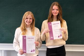 Mit Hanna Schelkle und Hannah Lohfink aus der Klasse G 10 konnten sich in diesem Schuljahr gleich zwei Schülerinnen unserer Schule für die Runde der Landesbesten der Schnupper-Chemieolympiade für die Mittelstufe, „Chemie - die stimmt!“, qualifizieren. Am 13. März werden sie in Frankfurt am Main auf weitere 31 Schülerinnen und Schüler der Jahrgangsstufe 10 aus ganz Hessen treffen, die sich für die zweite Runde empfehlen konnten. Neben einer dreistündigen Klausur ist ein Workshopbesuch in der ExperiMINTa für den bevorstehenden Veranstaltungstag geplant. - Weiterhin nahm Emma Derigs (ebenfalls Klasse G 10) an der ersten Runde teil, konnte jedoch leider nicht alle Aufgaben bearbeiten und verpasste so die Chance auf eine Teilnahme an der Landesrunde.