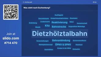 Bei der Gemeinde Eschenburg und ihren Gremien rangiert das Thema Dietzhölztalbahn nicht weit oben, betrachtet man die „5 A der Attraktivität“: Zu den Alleinstellungsmerkmalen (wie Dietzhölze und die Bushaltestelle am Markt), Anziehungspunkten (z. B. Eisdiele, Schwimmbad und Gastronomie), Anlaufstellen (wie Kita, Schule, Post, Ärzte, Tagespflege, Ladestation und Läden) und Anlässe (wie Markt und Veranstaltungen) kommt verstärkt auch die Kategorie Aufenthaltsqualität, zu der Begegnungsstätten, Plätze, Grünanlagen und Spielplätze beitragen.