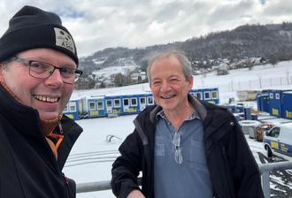 Die blauen Container im Gewerbegebiet Heerfeld sind weder das neue Hotel, das in Modulbauweise in den nächsten Wochen erstellt wird, noch sind das Flüchtlings-Unterkünfte, wie sie allerorten benötigt werden. „Ich versuche, Nachhaltigkeit auf die Baustellen zu bringen“, verrät mir Frank Conrad. Der Fast-Namensvetter ist Technischer Leiter Gerätemanagement beim Bauunternehmen PORR. Der österreichische Konzern hat in Eschenburg 6.000 Quadratmeter gekauft, um hier seine Lagerplätze für die Hochbau-Sparte zu zentralisieren. Zwei bisherige Standorte in Frankfurt und Düsseldorf wurden auf Eiershäuser Gemarkung zusammengezogen. Hier werden die Büros für künftige Baustellen bereitgestellt, das sind die blauen Container mit der gelben Aufschrift. Wenn der Bau des Teilchenbeschleunigers FAIR in Darmstadt auf die Zielgeraden kommt, werden erste Container abgebaut und in Eschenburg instand gesetzt für den nächsten Einsatz. Der könnte zum Südschnellweg nach Hannover gehen, wo Porr in den nächsten Jahren baut und allein 200 Container benötigt. Besondere Brücken wie in Horb, der Windkanal am BMW-Werk oder die Verlängerung Stadtbahnlinie U5 in Frankfurt sind weitere Baustellen, für die Container als Arbeitsplatz eingerichtet werden. Und die Ausstattung dafür geht oft über die „Drehscheibe“ in Eschenburg. Für ein spezielles Schwerlastgerüst kommen demnächst alleine 20 Lkw-Ladungen. Ein Turmdrehkran und eine Lagerhalle sind am Standort in Eschenburg noch geplant, um die Spezialausrüstung hier zu lagern und zu laden. Zu der Ansammlung von blauen Baustromzählern kommen noch PV-Module, die bei Porr zunehmend in Einsatz kommen. Die blaue Baufirma sucht keinen „grünen“ Anstrich, sondern Nachhaltigkeit: Für die Außenanlage sind bereits Bäume gepflanzt. Statt Ahorn, wie im Bebauungsplan vorgeschlagen, sollte es Wildobst nach dem Willen des Bauherren sein. „Gibt es hier Imker?“, war eine der ersten Standortfragen, die mir Frank Conrad anfangs stellte. Es geht ihm um Zusammenarbeit vor Ort. Für den Betrieb des Lagerplatzes werden noch Schlosser, Elektriker oder andere „Allrounder“ gesucht erzählt mir der Namensverwandte. Wenn das Hotel nebenan bald fertig ist, können auch externe Experten hier Station machen. Der Idee von einer zentralen Lösung in Deutschland wird gerade Wirklichkeit, freut sich