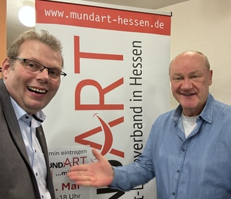 Goure! Ei, Gude! Die Begegnung mit Bodo Bach war herzlich hessisch. Dem Humoristen habe ich 2001 vier Wochen auf der Ferne einer Großraumredaktion ein wenig beim Handwerk zuhören dürfen, als ich während meiner Ausbildung zum Zeitungs-Redakteur auch mal vier Wochen bei Radio FFH ein Praktikum absolvierte. In der Radio-Redaktion wurden zwar Meldungen geschrieben und Beiträge gebaut für die Nachrichten um „fünf vor“, aus der abgetrennten Comedy-Redaktion drang aber immer wieder Lachen und der Ruf an Kollegen: „Komma, Hörma!“ Witzig ist, was lachen lässt und uns ein Schmunzeln ins Gesicht zaubert. Als uns Wieland Graiff eine Gelegenheit vermittelte, Robert Treutel hier auftreten zu lassen, war mir schon beim Weihnachtsmarkt in Eibelshausen die Werbe-Strategie klar: Andere gehen zum Lachen in den Keller - wir gehen in die Mehrzweckhalle. Und so verkauften sich die Karten, Halle voll, Stimmung toll. Das war hoffentlich nicht das letzte Mal, dass wir zusammenarbeiten durften. Hoschemal! Bodo Bach habe ich gleich ein Beitritts-Formular mitgegeben für den Dialekt-Dachverband MundART - zusammen mit der Einladung zum Festival „MundART mit Biss!“ am 1. Mai in Eibelshausen. Wer weiß, wenn nicht diesmal, vielleicht e annermal. Hessisch willkommen in Eschenburg!