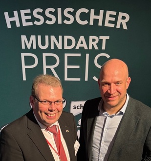 Das Parkplatz-Schild „Mundartminister“ hat ihm im Mai 2024 schon an der Mehrzweckhalle in Wissenbach so gut gefallen, dass Ingmar Jung am 1. Mai diesen Jahres auch beim Freiluft-Festival nach Eibelshausen kommt. Der Hessische Minister für Landwirtschaft und Umwelt, Weinbau, Forsten, Jagd und Heimat sieht das Thema als wichtig an. Mundart ist bei ihm Herzenssache, sagte Ingmar Jung auch im Februar bei der Verleihung des ersten Mundartpreises (Foto). Bürgermeister Götz Konrad, der als Vorsitzender des Dialekt-Dachverbandes MundART in der Jury ist, war aus dem Häuschen: Der von ihm geprägte Slogan „Hessens Vielfalt zum Klingen bringen“ ist der Name des Mundartpreises.