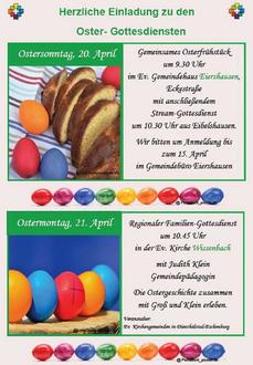 | 09.30 Uhr | Osterfrühstück, Ev. Gemeindehaus im Anschluss |