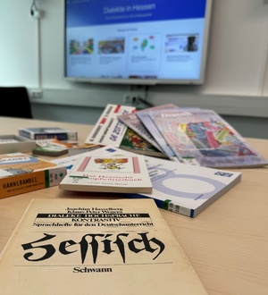 the hat seinen hessischen Zungenschlag verteidigt: „Man soll sich sein Recht nicht nehmen lassen. Der Bär brummt nach der Höhle, in der er geboren ist.“ Warum schien Dialekt über Jahrzehnte hinweg verpönt, fast schon verboten? 1976 erschien für „Hessisch“ das kontrastive Heft „Dialekt: Hochsprache“, das seitdem in der Lehrerausbildung zu beachten war. Deshalb haben sich Lehrer, Eltern und Schüler über Generationen nicht zu babbeln und schwätzen getraut. Dieses Heft, das vor fast 50 Jahren erschien, habe ich das erste Mal im Forschungszentrum Deutscher Sprachatlas gesehen (Foto). Und konnte die Zurückhaltung verstehen: Alles, was Spaß macht, war verboten! Im DSA, der 2026 sein 150-jähriges Bestehen feiern kann, ist man der Zukunft zugewandter. Hier werden nicht nur Forschungsergebnisse der Vorzeit konserviert, sondern Gegenwart und Zukunft immer wieder neu formuliert. Die Geschichte ist der Zukunft näher als die Gegenwart. Noch. Denn das Wichtigste an der Tradition ist doch die Innovation. Damit es weitergeht.