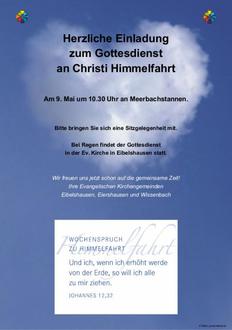 | 10.30 Uhr | Gemeinsamer Gottesdienst an den Meerbachstannen (mit Pfr. Wieland Schäfer). Bitte Sitzgelegenheit mitbringen! Bei schlechtem Wetter findet der Gottesdienst in der Ev. Kirche Eibelshausen statt. |