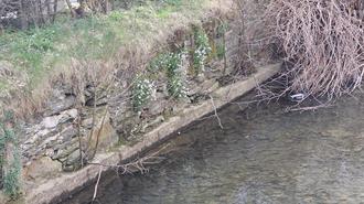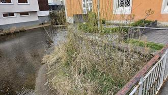 | Entlang der Dietzhölzmauer zwischen Kirchenbrücke und Backesbrücke wachsen zahlreiche Bäume und Sträucher aus der Mauer heraus. Weiterhin hat sich im Laufe der Jahre auf der kleinen Insel im Flußbett gegenüber der Kirche Bewuchs gebildet. |