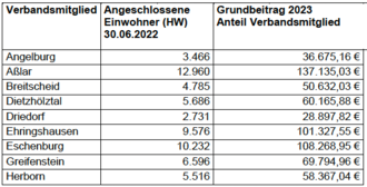 Der Grundbeitrag zur Deckung der nicht über die Wasserabnahmebeiträge gedeckten Kosten wird gem. § 27 Abs. 3 der Verbandssatzung für die Zeit vom 01.01.2023 bis 31.12.2023 vorläufig wie folgt festgesetzt: