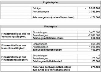 | mit dem Saldo aus den Einzahlungen und Auszahlungen aus lfd. Verwaltungstätigkeit auf | -419.000 € |