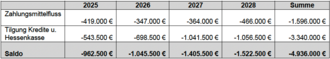 Zahlungsmittelüberschuss aus lfd. Verwaltungstätigkeit und Auszahlungen für ordentliche Tilgungen von Krediten und Zahlungen an das Sondervermögen Hessenkasse (§ 92 Abs. 5 Nr. 2)