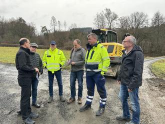 Die EAM Netz baut die Stromversorgung zwischen Eschenburg und Dietzhölztal weiter aus. Dafür ersetzt der kommunale Energieversorger eine Freileitung vom Umspannwerk Eibelshausen kommend in Richtung Dietzhölztal durch ein rund vier Kilometer langes 20-kV-Mittelspannungserdkabel. Zusätzlich wird im Rahmen dieser Baumaßnahme ein zweites Mittelspannungskabel mitverlegt, um die Kapazitäten weiter zu erhöhen. Der Bau der Trasse ist vor Kurzem gestartet und soll im Sommer 2026 abgeschlossen werden. Von dem Netzausbau profitieren neben den Gemeinden Eschenburg und Dietzhölztal auch die umliegenden Kommunen. Die EAM investiert rund eine Millionen Euro. Eschenburgs Bürgermeister Götz Konrad und Dietzhölztals Bürgermeister Andreas Thomas haben sich zusammen mit dem Leiter der EAM Netzregion Dillenburg Marcus Hief und EAM-Projektplaner Mario Becker ein Bild von den gestarteten Arbeiten gemacht.