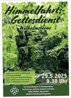 | 09.30 Uhr | Gottesdienst, an den Wilhelmsteinen mit Jochen Schmidt, Allianzmission & Pfarrer Michael Brück & Pfarrer Eberhard Hoppe |