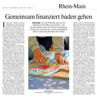Die Chancen steigen für den „Bonus für Bäder“. Wenn der Kommunale Finanzausgleich (KFA) in Hessen 2025 weiter verbessert wird, soll er eine besondere Zuweisung für Schwimmbäder enthalten als Entlastung des Betriebs. Für die anstehende „Evaluation“ haben sich Experten des Landes und der kommunalen Spitzenverbände das Beispiel Schleswig-Holstein angeschaut, wo Schwimmbäder unterstützt werden, in denen man Schwimmen lernen kann. Im Land zwischen den Meeren, in dem es angeblich mehr Badestellen und Strandabschnitte als Einwohner gibt, funktioniert das, was die F.A.Z „Gemeinsam finanziert baden gehen“ (04.05.2023) überschrieben hat. „Alle Kommunen sollten Schwimmbäder mitfinanzieren“ (03.05.2023 ZEIT) heißt es in allen Gazetten. Was steckt dahinter? Experten aus Hessens Finanzministerium und Kommunal-Verbänden haben sich in Schleswig-Holstein erkundigt, wo ein § 24 des Finanzausgleichgesetzes allen Schwimmbädern etwas von diesem Kommunen-Geld abgibt, die sich für die Schwimmausbildung stark machen. Ein Schwimmbad für alle braucht eine Finanzierung mit allen, haben wir in Eschenburg und Dietzhölztal immer gesagt. Wenn sich das nun in Hessen herumspricht, stehen die Chancen gut, dass das dann auch so beschlossen wird „schiedlich - friedlich“, wie der Begründer unseres Bades stets zu sagen pflegt.