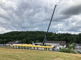 Statt der angekündigten 39 Personen hat der Kreis der Gemeinde Eschenburg für Juni 12 Personen zugewiesen. 9 Ukrainer und 3 Afghanen. Zeitgleich kamen die bestellten Container, die zu zwei „Dörfern“ in der Eiershäuser Straße 44 und 47 nun eingerichtet werden. Genügend Strom gab es selbst an den Festplätzen der Gemeinde nicht. Anschluss zur Mittelspannung ist nötig. Die Lage im Gewerbegebiet für diese Notunterkünfte ist auch besser durch die Nähe zu Bushaltestellen, Einkaufsmarkt, Kitas, Schulen und Rathaus.