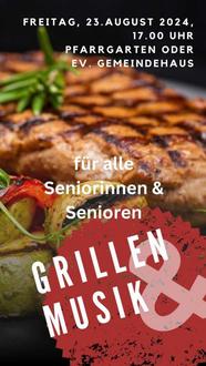 | 17.00 Uhr | Seniorentreffen: Grillen & Musik, Pfarrgarten oder Ev. Gemeindehaus |