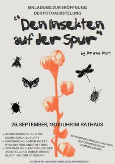 Mit seinen eindrucksvollen Fotos bringt der Naturfotograf Bruno Blatt etwas mehr Licht in die Welt der Insekten, die vielen von uns im Alltag sonst eher verborgen bleibt. Die Eröffnung der Fotoausstellung findet am 26.09.2023 um 19:00 Uhr im Rathaus statt. Neben einem Vortrag und einer Führung durch die Ausstellung, wird die Veranstaltung musikalisch vom Posaunenchor des CVJM Eibelshausen begleitet. Die Teilnahme ist kostenfrei und ohne Anmeldung möglich. Nach der offiziellen Eröffnung kann die Fotoausstellung noch bis zum 27.10.2023 zu den Öffnungszeiten des Rathauses kostenfrei besichtigt werden.