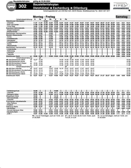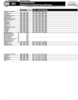 Die Busse müssen die Umleitungstrecke über Roth befahren. Daher kommt es in der Regel für Orte nördlich von Eibelshausen zu längeren Fahrzeiten in Kombination zu früheren Abfahrtszeiten. Die Linie 302 fährt daher auch nach einem reduzierten Fahrplan.