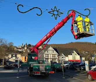 Am 8. Januar wollten die Bauhof-Kollegen eigentlich die Weihnachtsbeleuchtung demontieren, aber es war kein Durchkommen wegen der Demo. Mit dem Weihnachtsschmuck kann man nötigenfalls warten, aber bei Baumschnittarbeiten gelten Fristen und Dachrinnenreinigung kann auch dringend werden. Wartung und Neuinstallation der Straßenbeleuchtung ist die wohl häufigste Tätigkeit.