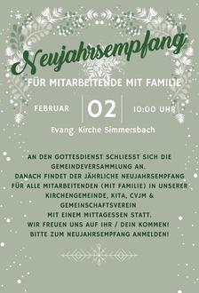 | 10.00 Uhr | Gemeinsamer Gottesdienst mit anschließender Gemeindeversammlung und Mitarbeiter Neujahrsempfang, Ev. Kirche (mit Pfarrer Michael Brück) |