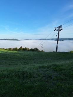 Das ist ein Bild für „50 Jahre Eschenburg“, denn Hirzenhain kam wie Simmersbach und Roth 1974 zur Gemeinde hinzu. Henrik Hermann hat dieses Foto vom Hang mit Skilift und Wolken im Tal „geschossen“ - und damit auch eine Zukunfts-Vision getroffen: Der Skiclub und die Gemeinde-Gremien suchen Wege, an dieser Stelle auch das Thema Mountainbike zu etablieren, bevor sich jeder seine eigenen (illegalen) Pfade sucht. „Leider liegt der amtliche Naturschutz noch wie eine Wolkenwand vor unserem Blick nach vorne - deshalb ist das schon ein Symbolbild“, sagt Bürgermeister Götz Konrad. Genau solche Aufnahmen werden gesucht für den Fotowettbewerb unter dem Titel „Eschenburg erleben“.
