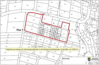 Diese Erweiterungsfläche umfasst ca. 5.100 m² mit vier Flurstücken und derzeit vier Eigentümern. Entstehen könnten in dem Gebiet, je nach topographischer Umsetzung, vier Wohnbaugrundstücke.