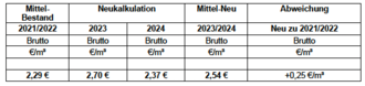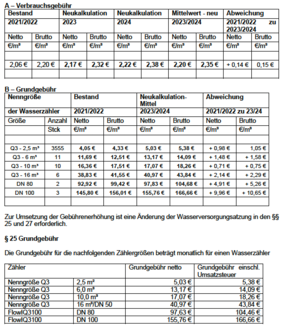 Um nicht in beiden Kalenderjahren die Gebühren neu festsetzen zu müssen, schlägt die Betriebsleitung in Verbindung mit dem Rechtsanwaltsbüro Rösch für die beiden Jahre 2023/2024 die Bildung eines Mittelwertes vor.