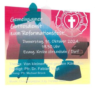 | 19.30 Uhr | gemeinsamer Gottesdienst zum Reformationsfest mit Fabian Vogt in Hirzenhain (siehe unten) |