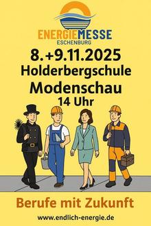 Zugegeben, bei den Buchstaben J, L, Q, X und Y haben wir noch nichts auf dem Zettel. Aber das Programm füllt sich: Bei der 12. Auflage der Energie-Messe in Eschenburg, die erstmals an der Holderbergschule stattfindet, wird am Samstag und Sonntag jeweils um 14 Uhr eine „Modenschau für Zukunfts-Berufe“ präsentiert. Hierbei werden Berufe von A bis Z vorgestellt, die hier vor Ort ausgebildet und für die Zukunft benötigt werden. Berufsorientierung ist damit das Top-Thema der Beratungsbörse. Die 12. Auflage der „Kleinen Messe“ findet am 8. und 9. November (jeweils 11 bis 17 Uhr) an der Holderbergschule statt. Die Ausstellung wird in der Aula sowie in den Fluren und Foyers der BCD-Trakte zu finden sein. Die Modenschau um 14 Uhr wird im Mehrzweckraum stattfinden.