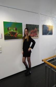 Die Künstlerin Claudia Fingerhut hat eine Auswahl ihrer Bilder im Rathaus ausgestellt. Hierbei handelt es sich um Bilder, überwiegend Tiermotive, die sie in Airbrush-Mischtechnik gemalt hat. Bei dieser Technik wird eine Fotovorlage mit einem Lackstift vorgemalt, gemalt wird dann mit Spraydosen und Airbrushpistole. Airbrushmotive können nicht nur auf Leinwand gemalt werden. Frau Fingerhut verziert damit Autos (Motorhauben usw.) Brillenetuis, Toilettendeckel, Innen- und Auswände, Helme und vieles mehr in allen möglichen Größen.