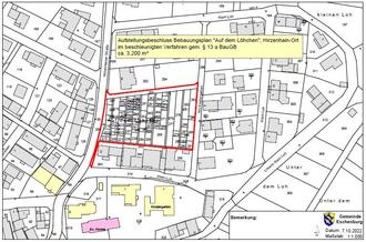 Die Gemeindevertretung der Gemeinde Eschenburg beschließt gem. § 2 BauGB die Aufstellung des Bebauungsplanes „Auf dem Löhchen“ in der Gemarkung Eschenburg, Ortsteil Hirzenhain-Ort nach § 13 a BauGB. Der räumliche Geltungsbereich des Bebauungsplanes ist der nachfolgenden Übersichtskarte zu entnehmen.