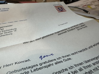Nur kurz danach lernte ich Dr. Ullrich auch persönlich kennen - im Dienst und in Dillenburg. Er wurde Direktor des Amtsgerichts Dillenburg (2002 - 2006). Nachdem sich unsere Wege trennten - ich kam ins Bürgermeisteramt, er wurde Vizepräsident des Landgerichts Marburg (2006 - 2008), dann Präsident des Landgerichts Marburg (2008 - 2014) und Präsident des Landgerichts Limburg (2014 - September 2015) - ergaben sich mit dem „RP“ danach wieder mehr Kontakte. Was wir aber erst jetzt voneinander erfahren und aneinander schätzen: Mir schwätze Platt! Zum ersten Mal war uns das bei der Eröffnung des Nationalen Automuseums aufgefallen, seitdem schreibt auch der Regierungspräsident - zumindest in Briefen zum Geburtstag - handschriftlich „Goure!“ zur Anrede.