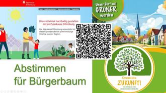 Wenn alle 895 Familien, die bei der Aktion „Unser Dorf soll grüner werden“ ein Bäumchen bekommen haben, für die Fortsetzung von „Bürgerbaum“ stimmen beim Sparkassen-Wettbewerb, wird das gemeinsame Vorhaben nachhaltig. Einfach den QR-Code scannen und abstimmen für „Bürgerbaum - von der einzelnen Aktion zur gemeinsamen Mission“.