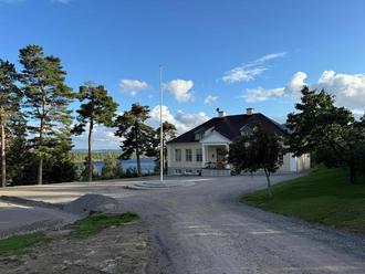 Das ist die „Neue Schule“ in Glasbruk im schwedischen Wärmland, erbaut 1924, heute eine Villa. Der kleine Ort am großen See war zur Jahrhundertwende des 20. Jahrhunderts die größte schwedische Glashütte für Fensterglas. Schulgebäude sollten schön sein, war damals Vorschrift in Schweden. Der Standort „hoch und gut sichtbar“, in der schönsten Umgebung.