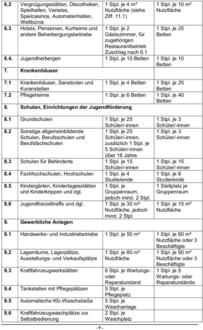 | (8) | Bei der Stellplatzberechnung ist jeweils ab einem Wert der ersten Dezimalstelle ab fünf auf einen vollen Stellplatz aufzurunden. |