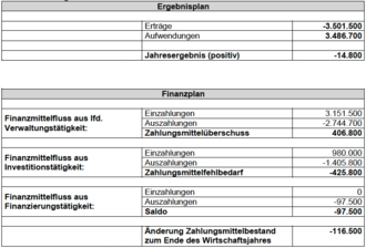 Es zeigt sich, dass die im Haushaltsplan 2023 des AV Obere Dietzhölze angeforderten Umlagen für 2023 und 2024 ebenso wie die gemäß Wirtschaftsplan 2023 des AV Perfgebiet-Bad Laasphe angeforderten Umlagen für die Jahre 2023 und 2024 von denen noch im Frühjahr geltenden Umlagebeiträgen abweichen.