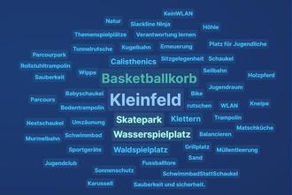 Die Mitglieder des Kultur- und Sozialausschusses sind dankbar für eine große Resonanz: Auf die Umfrage „Was wünschen wir uns für die Spielplätze in Eschenburg?“ gab es 101 Einsendung, die in einer Wortwolke die wichtigen Begriffe zeigen. Das Sammeln von Ideen und Suchen nach Partnern geht weiter: Über die Adresse zukunft@eschenburg.de waren am Nikolaustag bereits mehr als 40 Mails eingegangen, die Bürgermeister Götz Konrad anonymisiert in einem ersten Überblick vorstellen konnte. Der Ausschuss war sich einig, dass weiter gesammelt und im neuen Jahr geordnet und geplant wird, wie die 25 Spiel- und Bolzplätze der Gemeinde weiterentwickelt und neue Attraktionen geschaffen werden. Themen wie Wasserspielplatz, Klettern und Mountainbike tauchten bei der Umfrage auf, die Mails lieferten sogar umfangreiche Ideensammlungen und Beispiele.