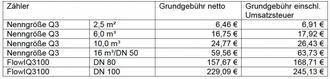 Die Grundgebühr für die nachfolgenden Zählergrößen beträgt monatlich für einen Wasserzähler