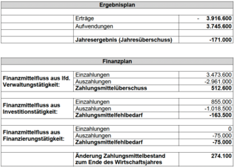 Der Jahresabschluss 2023 enthält das zusammengefasste Ergebnis der Wasserversorgung und der Abwasserbeseitigung mit einem Verlust von 192.152,86 €.