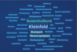 Bürgermeister Konrad erläutert, dass dieser Punkt künftig „Spielplätze“ heißen muss, denn es geht um „Mehr Spielplätze“ für alle Altersklassen. Auf die Umfrage „Was wünschen wir uns für die Spielplätze in Eschenburg?“ hat es 101 Einsendungen für eine Wortwolke gegeben. Darunter fallen die Themen Kleinfeld, Basketballkorb, Skatepark, Wasserspielplatz auf; es kommen auch neue Themen wie Calisthenics in den Blick.